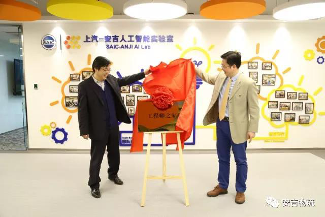 Secretary of Party Committee Cai Guo and Deputy General Manager Shen Fei of Anji Logistics unveiled the plaque of “Home of Engineers”