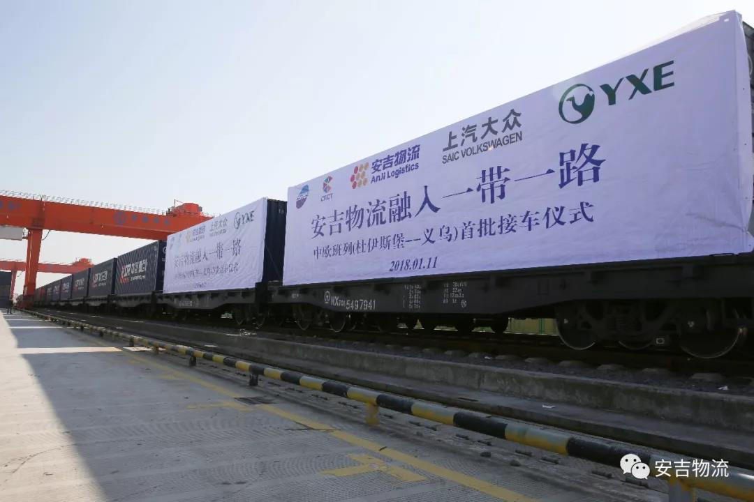 ThisCR Express train started on December 18, 2017 at Duisburg, entered China through Alataw Pass after traveling over 13000 km through Poland, Belarus, Russia and Kazakhstan for over 20 days with twice reloading, and finally arrived at Yiwu West Station. Since receiving client’s urgent shipping demand on December 8, the Overseas Business Division of Anji Logistics, with collective wisdom and efforts, took charge in the whole process of “door-to-door” transportation from factory pick-up, railway transportation, customs clearance, and delivery to domestic warehouse of Volkswagen.